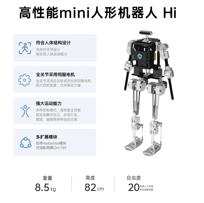 商品名称: 人形机器人-Hi 商品货号 : SP2026040359904 品牌 : 高擎机电 产地 : -- 包装规格 : -- 等级 : --